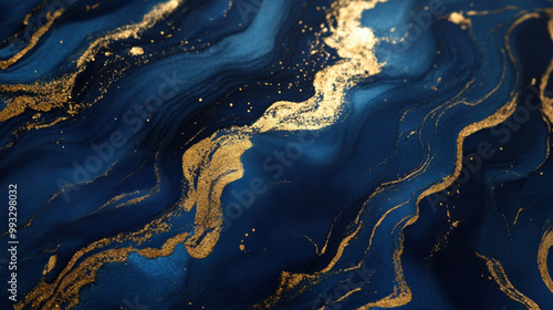 Fototapeta premium Luxurious navy blue and gold abstract background with flowing patterns, creating elegant and sophisticated atmosphere. Perfect for design projects and artistic expressions