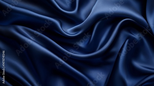 © Pichapob, Obraz premium Luxurious Navy Blue Satin Fabric Texture Background for Design