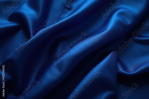 © Ningjing, Fototapeta premium Luxurious navy blue silk pyjama with soft wrinkles detail, relaxed fit, luxury fabric