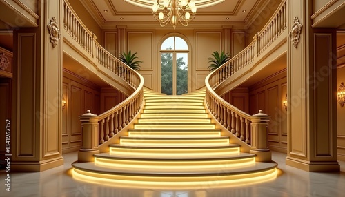 © Denis, Fototapeta premium Luxurious opulent staircase with illuminated steps in a grand interior space