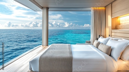 Fototapeta premium Luxurious Overwater Bedroom with Ocean View