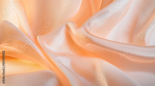 Fototapeta premium Luxurious Peach Fabric Backdrop with Soft Folds and Warm Light Illumination for Tranquil Atmosphere