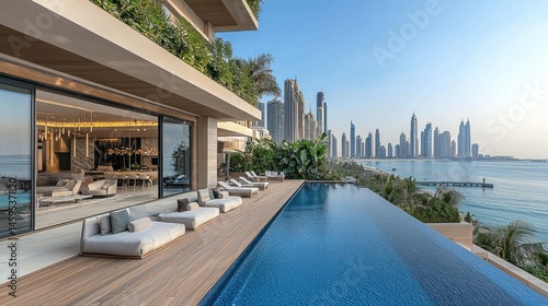 Obraz premium Luxurious penthouse with infinity pool overlooking cityscape