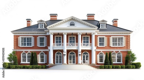 Fototapeta premium Luxurious Photo Realistic Mansion Colonial House Isolated on White Background
