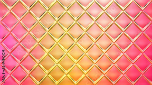 © mamo studios, Naklejka premium Luxurious Pink and Gold Quilted Diamond Pattern Background with Modern Gradient Texture. Elegant Geometric Abstract Design.
