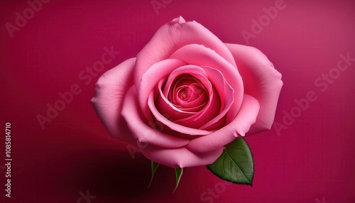 Fototapeta premium Luxurious Pink Rose on Elegant Deep Magenta Background for Valentine's Day. Perfect for Romantic Card Designs, Wedding Invitations, or Passionate Anniversary Celebrations February