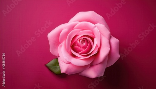 Fototapeta premium Luxurious Pink Rose on Elegant Deep Magenta Background for Valentine's Day. Perfect for Romantic Card Designs, Wedding Invitations, or Passionate Anniversary Celebrations February