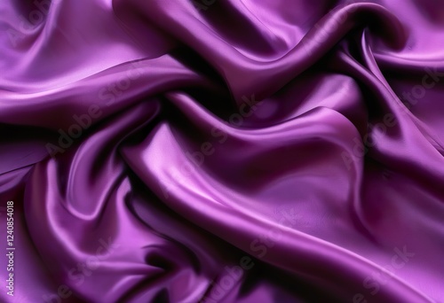 Fototapeta premium Luxurious Purple Silk Fabric Drapery, Soft Texture, Elegant Waves, Rich Color, Smooth Surface, Deep