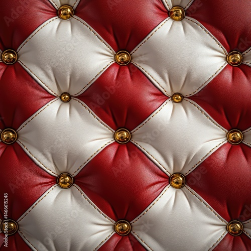 © tanawatbig, Obraz premium Luxurious Red and White Upholstery with Decorative Buttons
