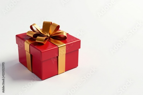 © photohappy, Obraz premium Luxurious red gift box with gold ribbon on a white background, , wrapping