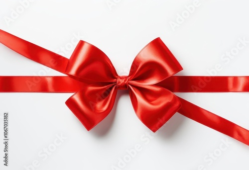 Fototapeta premium Luxurious Red Ribbon Bow on White: Perfect for Gift Promotions, Holiday Ads, and Festive Branding,top view,Christmas present wrapping,perfect for gift wrapping and decoration