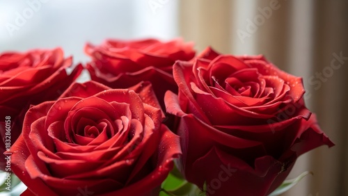 © Muhammad, Fototapeta premium Luxurious red roses bloom with velvety petals, evoking romance and passion in soft light.