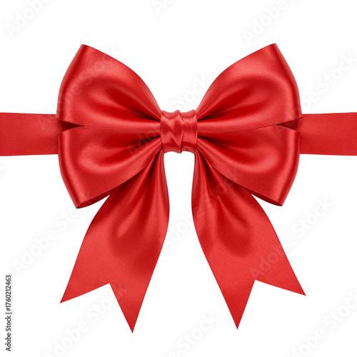 © Creative Design, Naklejka premium Luxurious red satin bow tied elegantly on a simple dark surface isolated on transparent background