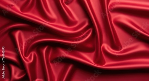 Fototapeta premium Luxurious red satin fabric with elegant folds and smooth texture