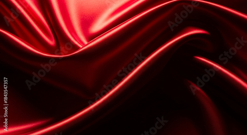 Obraz premium Luxurious red satin fabric with smooth, flowing waves and highlights,...