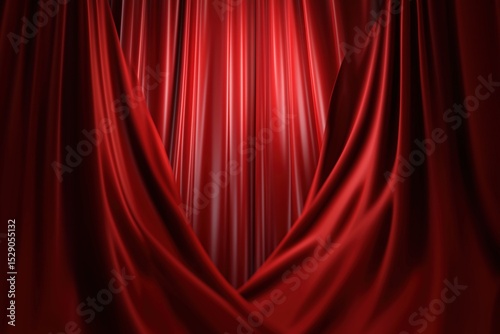 Fototapeta premium Luxurious red silk curtains draped elegantly in soft lighting