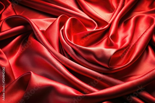 © Autun, Obraz premium Luxurious red silk drapes in soft, wavy pleats, elegantly showcased against a blurred background.
