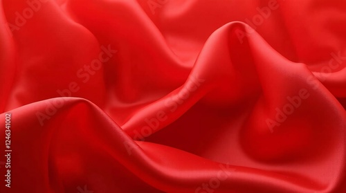 © Pixel Corner, Obraz premium Luxurious Red Silk Fabric With Smooth Folds and a Lustrous Shine.