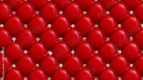 © Nardo leo, Obraz premium Luxurious Red Tufted Leather Background with Diamond Accents Creating a Rich and Elegant Decorative Texture