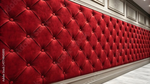 © Siam, Obraz premium Luxurious red tufted velvet wall panel interior design