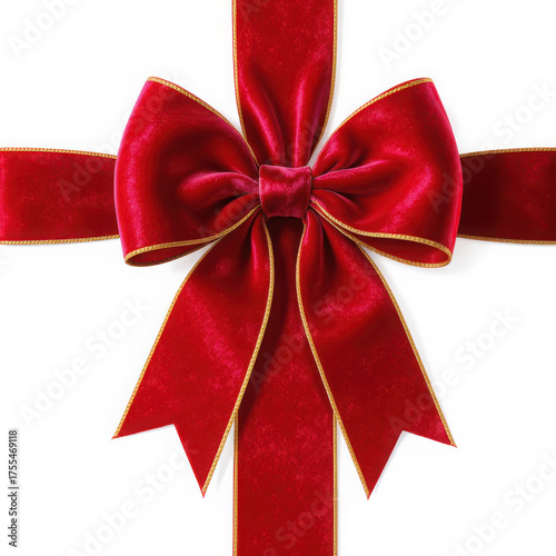 © Babla, Fototapeta premium Luxurious Red Velvet Ribbon Bow with Gold Trim on Background image photo