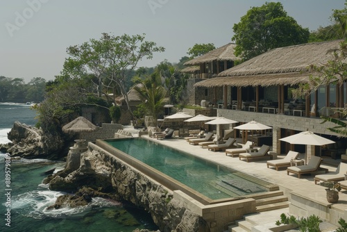 © Leo Rohmann, Obraz premium Luxurious Resort with Infinity Pool and Coastal View Offering a Serene and Scenic Tropical Vacation Experience