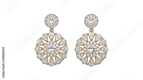 © IMPic, Naklejka premium Luxurious Rose Gold and Diamond Drop Earrings - Elegant Bridal Jewelry