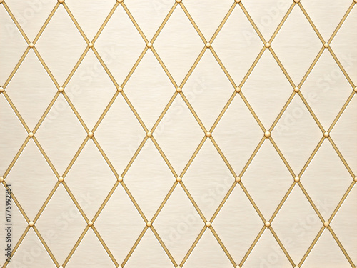 © Abdul, Obraz premium Luxurious seamless diamond quilted pattern background featuring cream fabric and golden studs