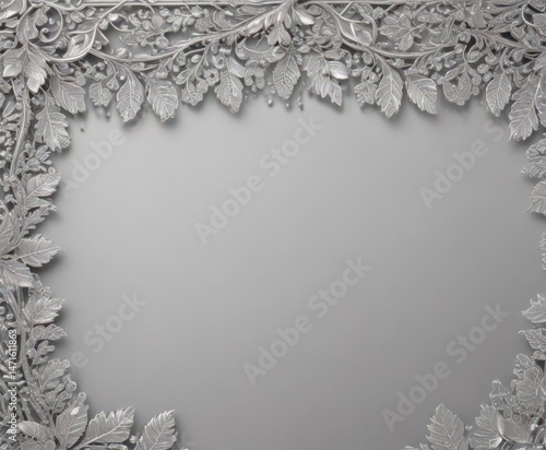 Fototapeta premium Luxurious silver leaf lace border, shimmering, intricate detail , elegant, ornament