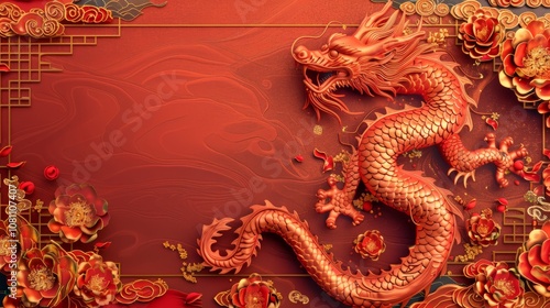 © Gro, Obraz premium Luxurious Snake Design for Chinese New Year Celebrations Generative AI
