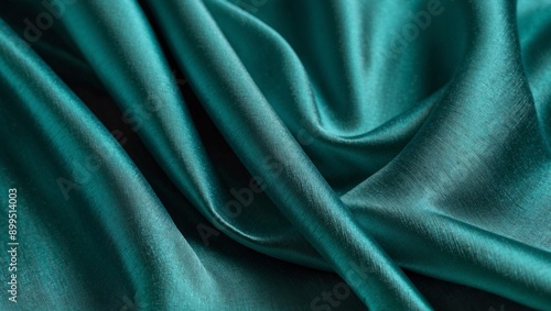 Obraz premium Luxurious teal silk fabric draped in soft, elegant folds.