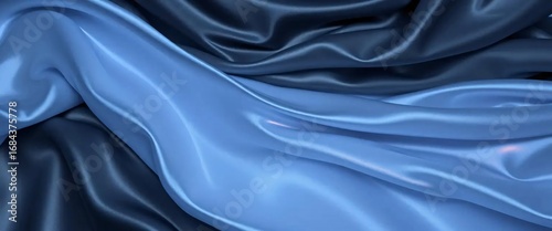 Obraz premium Luxurious Two-tone Blue Satin Fabric Texture with Flowing Waves and Smooth Folds