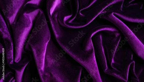 © Nikolai, Obraz premium Luxurious Velvet Fabric in a Deep Purple Shade with Elegant Folds and Light Reflections.