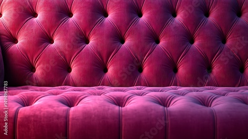Obraz premium Luxurious velvet upholstery featuring a deep magenta hue and classic button...