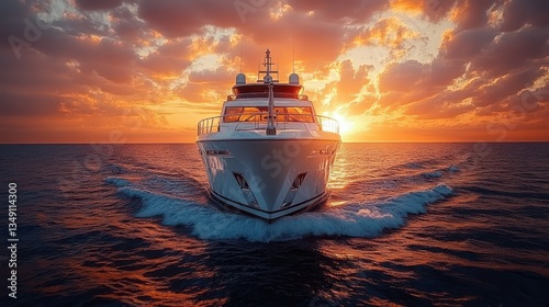 © zalfa_std98, Fototapeta premium Luxurious yacht cruising at sunset, vibrant colors reflecting on water