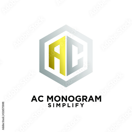 Fototapeta premium luxury ac, ca, a c initial monogram hexagon letter gold silver logo design with white background