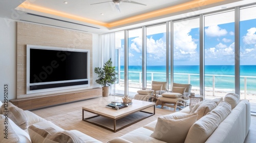 Fototapeta premium Luxury Beachfront Living Room with Ocean View