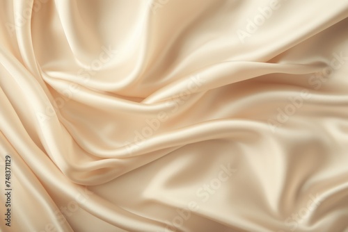 Fototapeta premium Luxury beige silk satin draped fabric background template.