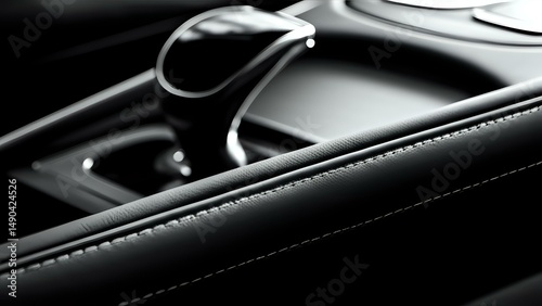 © joe, Naklejka premium Luxury Car Interior: Close-up of Gear Shift and Leather
