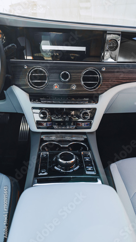 Obraz premium Luxury car interior with modern controls and dashboard design for comfortable...