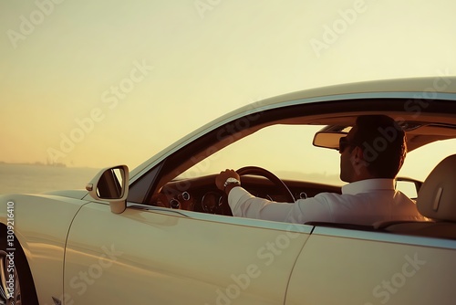 Naklejka premium Luxury Car Ride at Sunset: A Gentleman's Journey