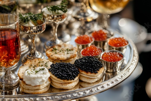Naklejka premium Luxury Caviar and Salmon Appetizers Platter