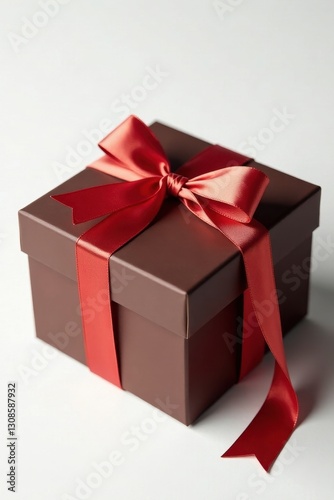 © Jaipak, Obraz premium Luxury chocolate gift box, adorned with a silk ribbon, pure white backdrop, birthday, celebration, elegant