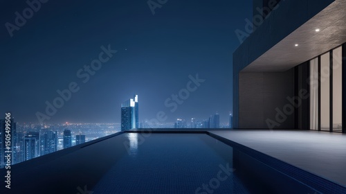 © Oleksii, Obraz premium Luxury city view from modern infinity pool at night