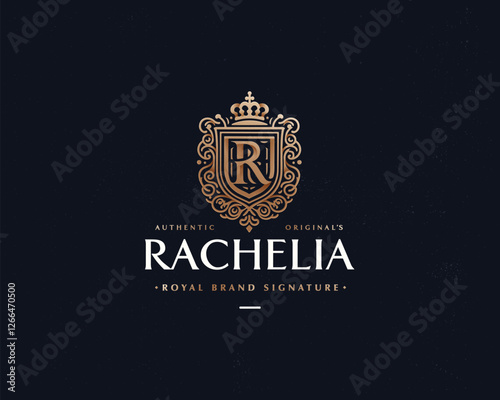 © yourlogocreator, Obraz premium Luxury classic calligraphy monogram letter inital R logo template for business company