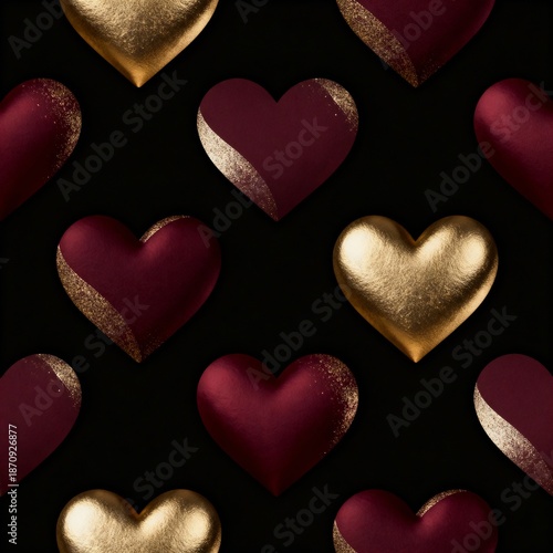 © Kittapud Janpirom, Fototapeta premium Luxury Dark Valentine Seamless Pattern