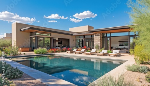 © Richafuji, Fototapeta premium Luxury Desert Home with Stunning Pool and Expansive Views