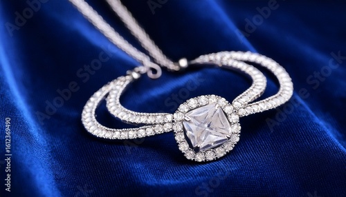 Fototapeta premium luxury diamond necklace on a dark blue velvet background