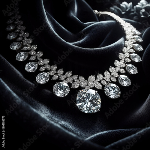 Fototapeta premium Luxury Diamond Necklace on Black Silk