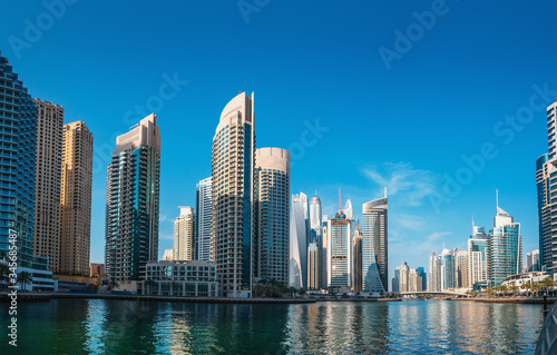 Fototapeta premium Luxury Dubai Marina canal in Dubai with high buildings at background, United Arab Emirates.
